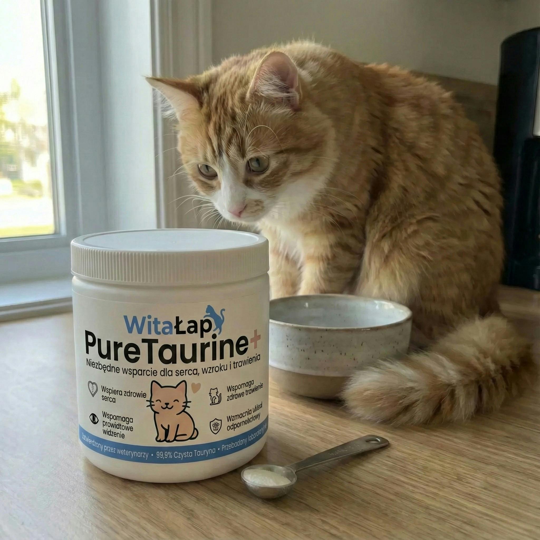 "Mój weterynarz uznał, że kot jest trochę osłabiony i zalecił kurację czystą tauryną. To proste, naturalne i skuteczne. Przy ostatniej kontroli wszystko było już w normie. To nasz poranny rytuał."